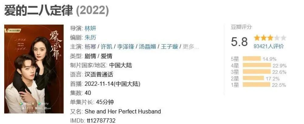 另一部《爱的二八定律》蹭的也是“姐弟恋”热度,可惜杨幂的颜值已经完全撑不起来了,不是磨皮到发光,就是忘记开滤镜。