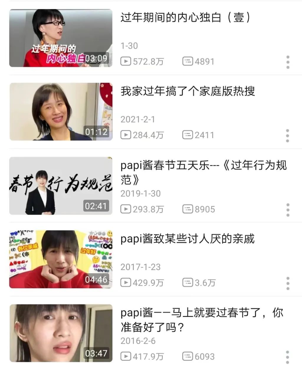 近几年papi酱过年主题视频