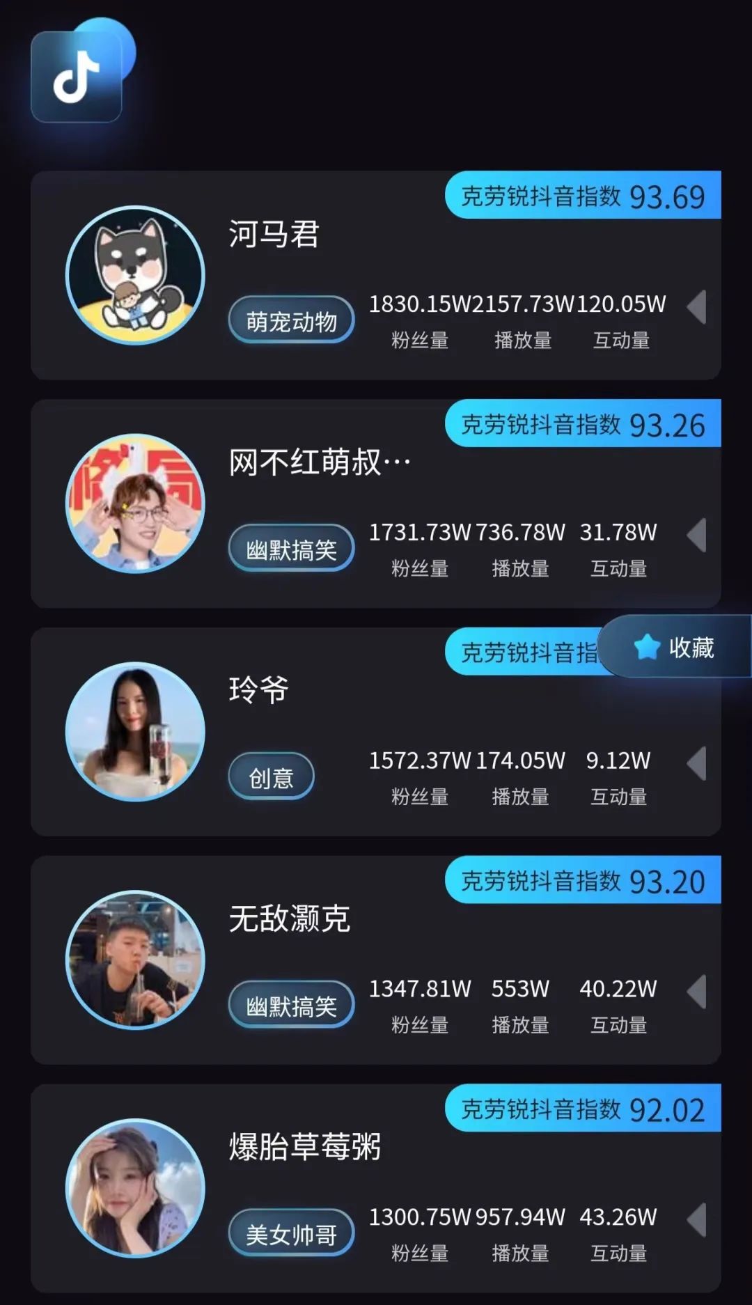 从粉丝数来看,仅以抖音为例,“河马君”1731.73万,“玲爷”1572.37万,“无敌灏克”1347.81万,“爆胎草莓粥”1300.75万,还有“王蓝莓”“锅盖wer”“一栗小莎子”“itsRae”粉丝均已过千万。