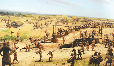 展厅里呈现的商代筑城场景。 郑州商都遗址博物院供图